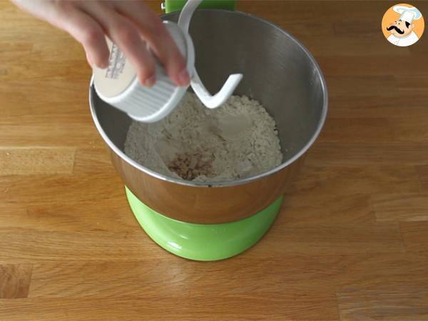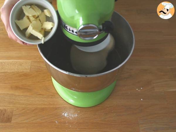 Ajoutez ensuite le beurre en petits morceaux, petit à petit, tout en pétrissant. Lorsque le beurre est bien incorporé, laissez la pâte lever à température ambiante pendant 1 heure.