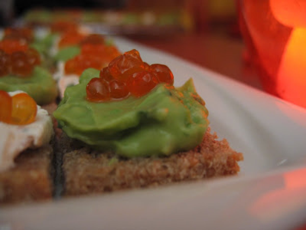 Canapés d'oeufs de saumon à l'avocat & au fromage frais