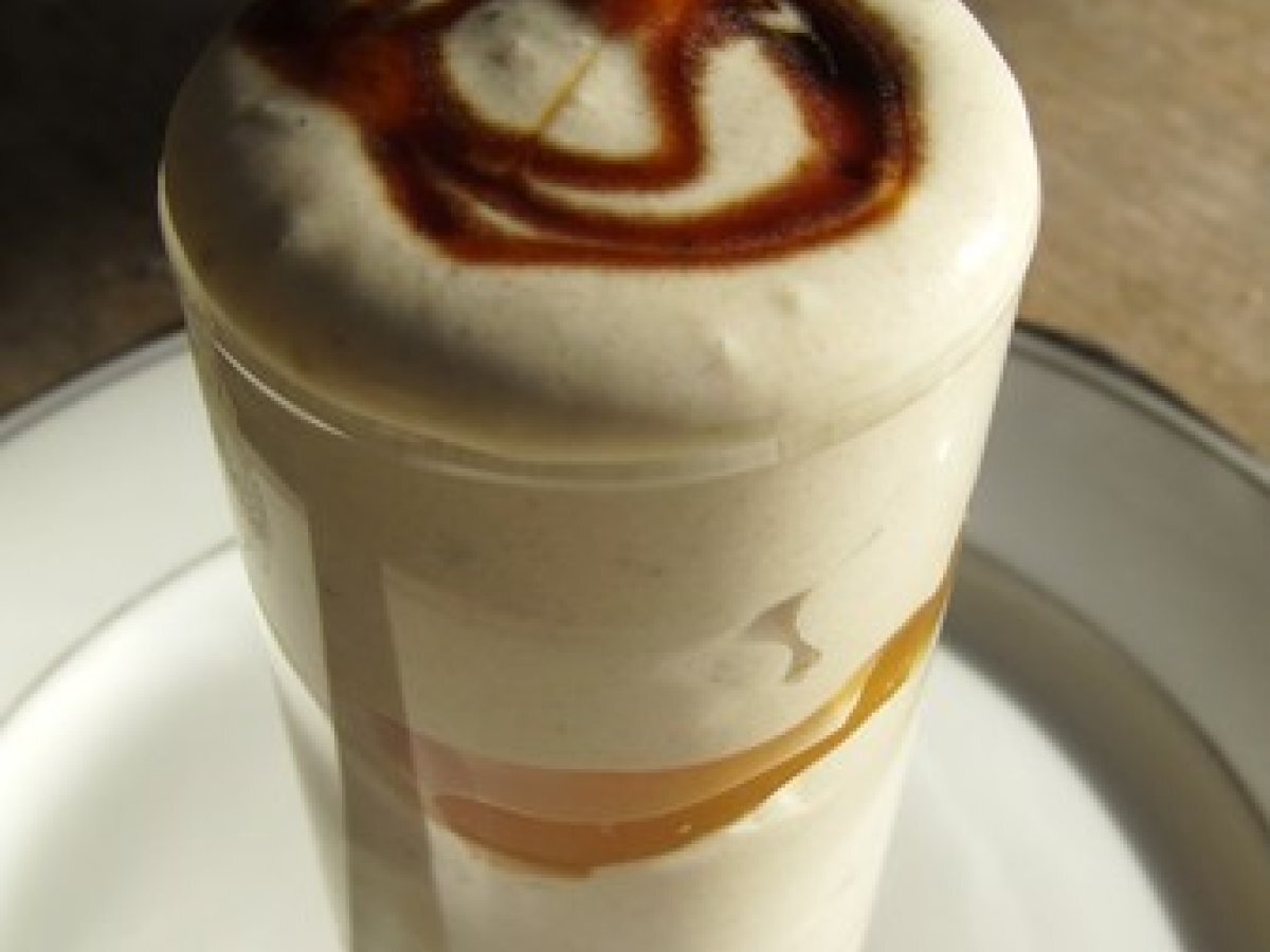 Chantilly au foie gras, gelée de fruits de la passion, sirop de coco