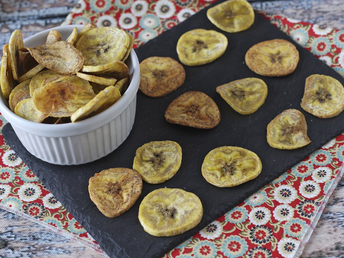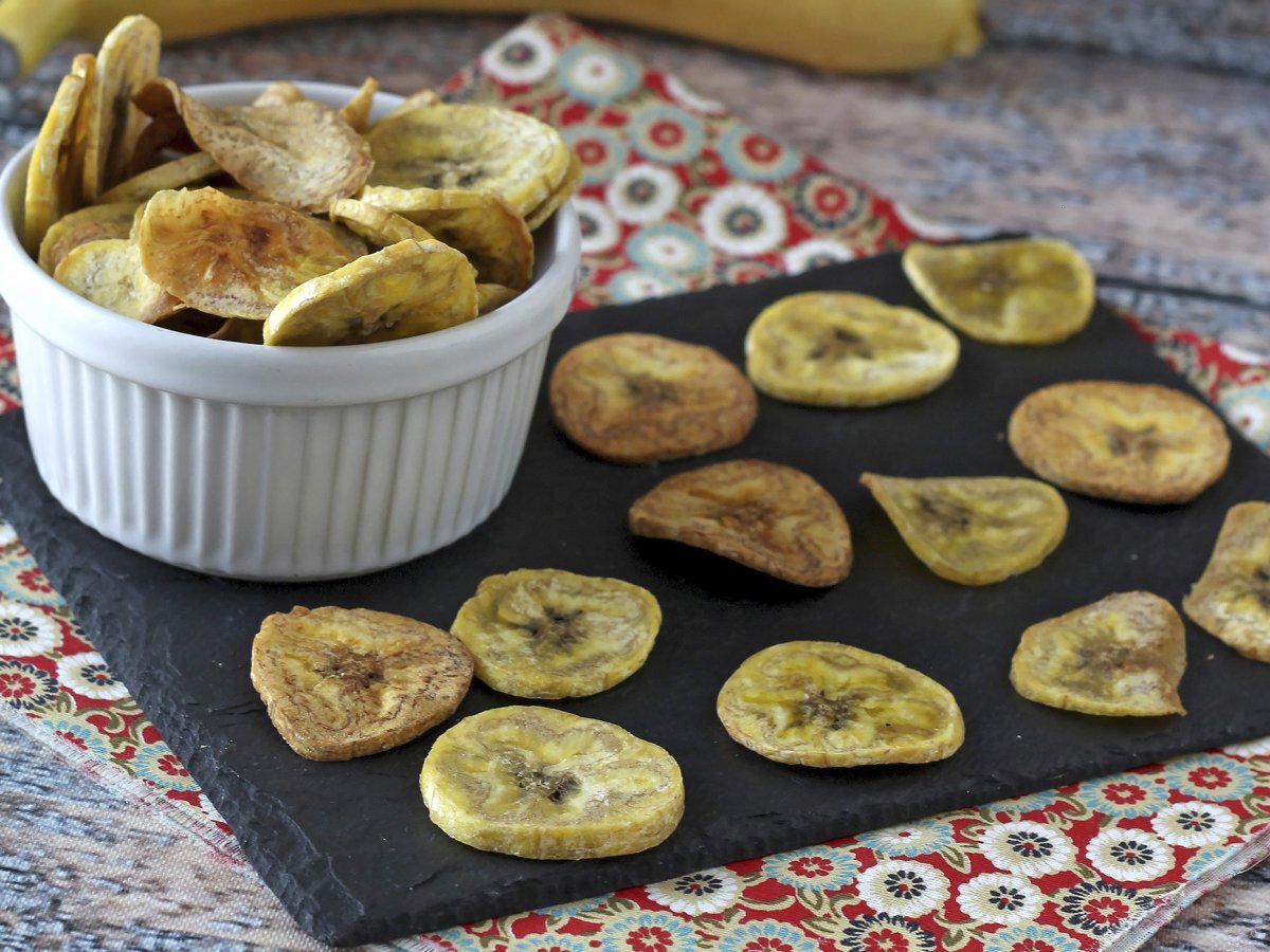 Ces chips croustillantes de banane plantain sont une excellente alternative aux snacks classiques pour l'apéro! Faciles à préparer, il suffit de trancher des bananes plantains mûres, de les assaisonner à votre goût, et de les cuire au four jusqu'à ce qu'elles soient dorées et croustillantes :-) Saines et simples à réaliser, ces chips vous permettront de découvrir une nouvelle façon de savourer les bananes plantains, très populaires en Amérique Latine !