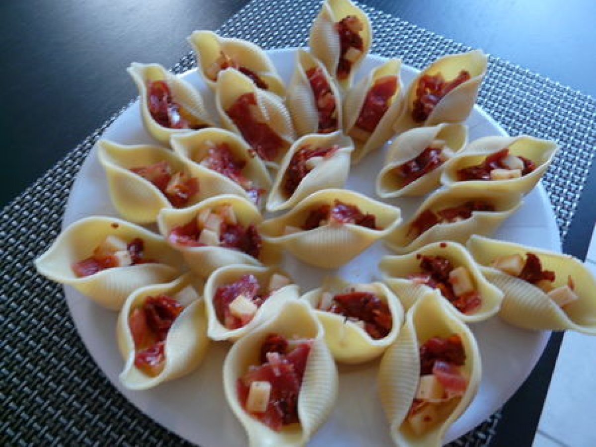 Conchiglies farcies au pata negra, tomates séchées et comté Apéritiffacile30 min Envoyer cette recette à un ami Imprimer cette page Poser une question à l'auteur Publier votre photo de cette recette Ingrédients 4 des conchiglies du jambon espagnol Pata negra du comté des tomates séchées fleur de sel poivre et huile d'olive