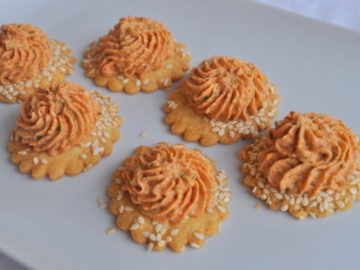 Confinade de tomates et mascarpone sur croustillant Apéritiffacile20 min Envoyer cette recette à un ami Imprimer cette page Poser une question à l'auteur Publier votre photo de cette recette Ingrédients 4 1 pâte brisée 50 g de graines sésame 150 g de mascarpone 100 g de tomates confites 1 cuillère à soupe d'huile d'olive 6 à 8 feuille de basilic 1 cuillère à café de piment d'Espelette