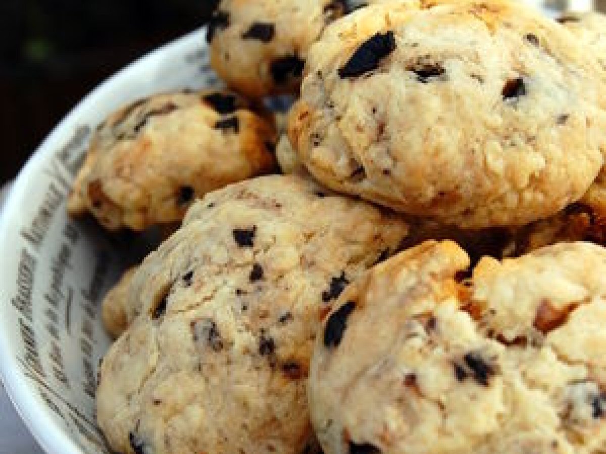Cookies salés : chorizo, noix & olives noires PrécédentSuivant Apéritiffacile35 min161 Kcal Envoyer cette recette à un ami Imprimer cette page Poser une question à l'auteur Publier votre photo de cette recette Ingrédients 15 180 g de farine 100 g de parmesan râpé 1/2 sachet de levure 100 g de beurre froid 1 oeuf battu 50 g d'olives noires 50 g de chorizo (de chez Panier Délice) 30 g de noix Coût estimé: 5.02Euros€ (0.33€/part)