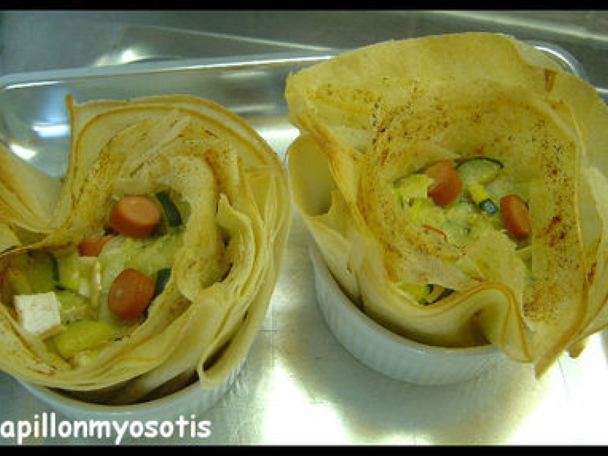 Corolles croustillantes courgettes saucisses chevre votez maintenant PrécédentSuivant Apéritifmoyen55 min779 Kcal Envoyer cette recette à un ami Imprimer cette page Poser une question à l'auteur Publier votre photo de cette recette Ingrédients 2 4 feuilles de brick 2 courgettes 1 oignon 2 saucisses genre Knacki Quelques tranches de bûchette de chèvre 10 cl de crème liquide 1 noisette de margarine Ail moulu Paprika Étal des Épices Noix de muscade Huile d'olive Coût estimé: 4.84Euros€ (2.42€/part)