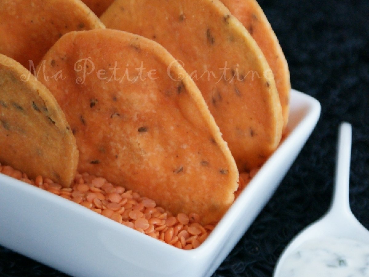 Crackers aux lentilles corail & cumin Apéritiffacile13 min255 Kcal Envoyer cette recette à un ami Imprimer cette page Poser une question à l'auteur Publier votre photo de cette recette Ingrédients 4 200 g de lentilles corail 90 g d’eau 1 cuillère à soupe de graines de cumin 1/2 cuillère à café de sel poivre du moulin une belle pincée de piment d’Espelette huile de friture Coût estimé: 1.79Euros€ (0.45€/part)