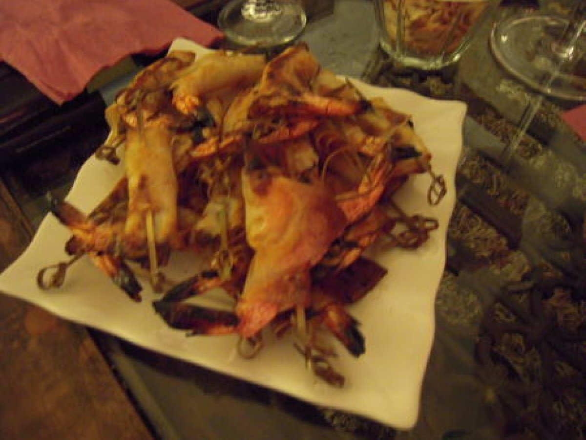 Crepes croustillantes aux gambas votez maintenant Apéritiffacile50 min Envoyer cette recette à un ami Imprimer cette page Poser une question à l'auteur Publier votre photo de cette recette Ingrédients 6 Pour 6 personnes 8 feuilles de brick 30 gambas crues 4 cuillère à soupe d'huile d'arachide 3 cuillère à soupede sauce soja 2 cuillère à soupede miel liquide 1 tige de citronnelle Sel poivre