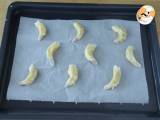 Disposez vos crevettes enrobées de feuille de filo sur une plaque de cuisson recouverte de papier sulfurisé.