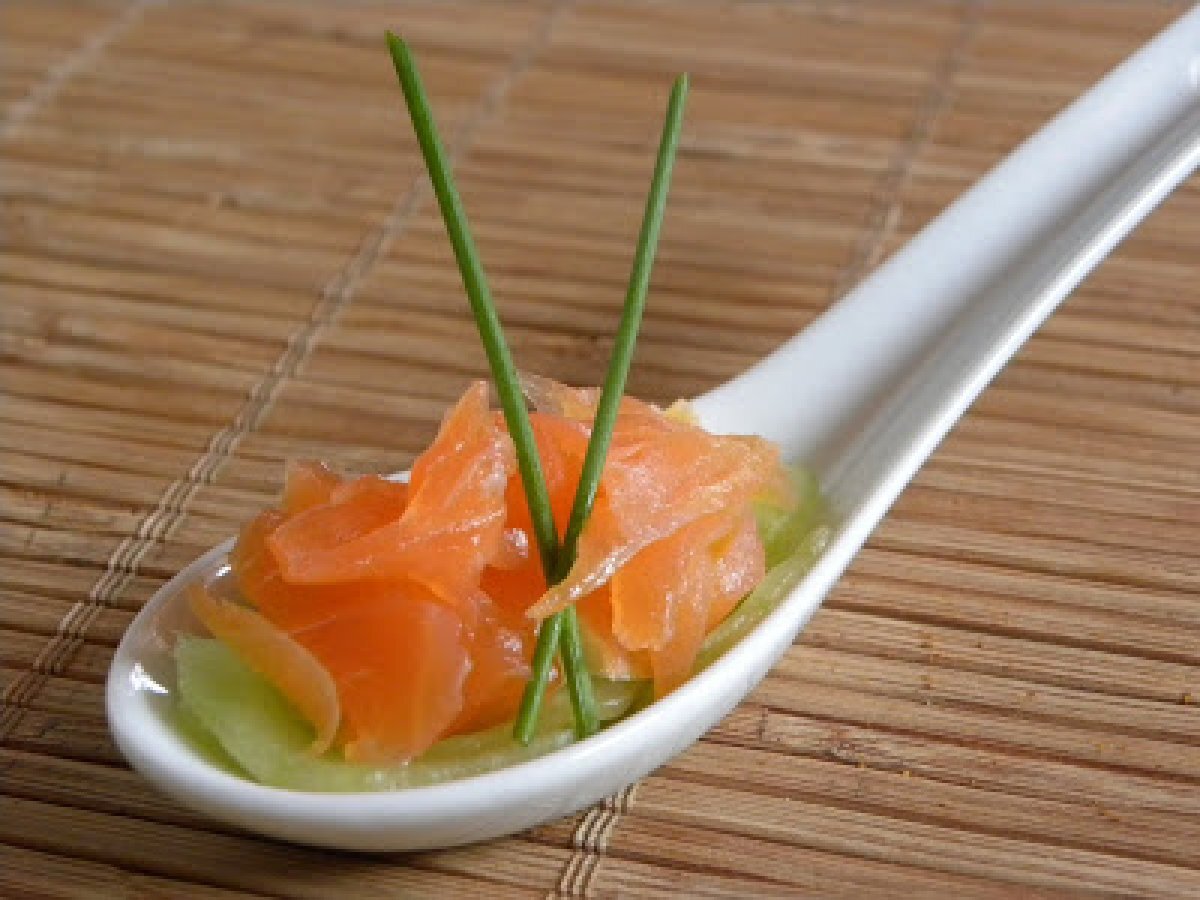 Cuillères apéritives : concombre, truite fumée et sauce moutardée Apéritiffacile10 min45 Kcal Envoyer cette recette à un ami Imprimer cette page Poser une question à l'auteur Publier votre photo de cette recette Ingrédients 8 150 g de truite fumée 1 petit concombre 3 cuillères à café de moutarde 1 cuillère à soupe de crème épaisse Ciboulette Poivre