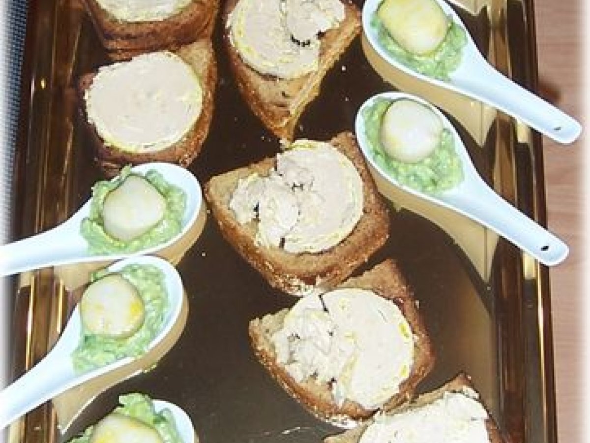 Cuillers apéritives : noix de saint-jacques aux agrumes, crème d'avocat