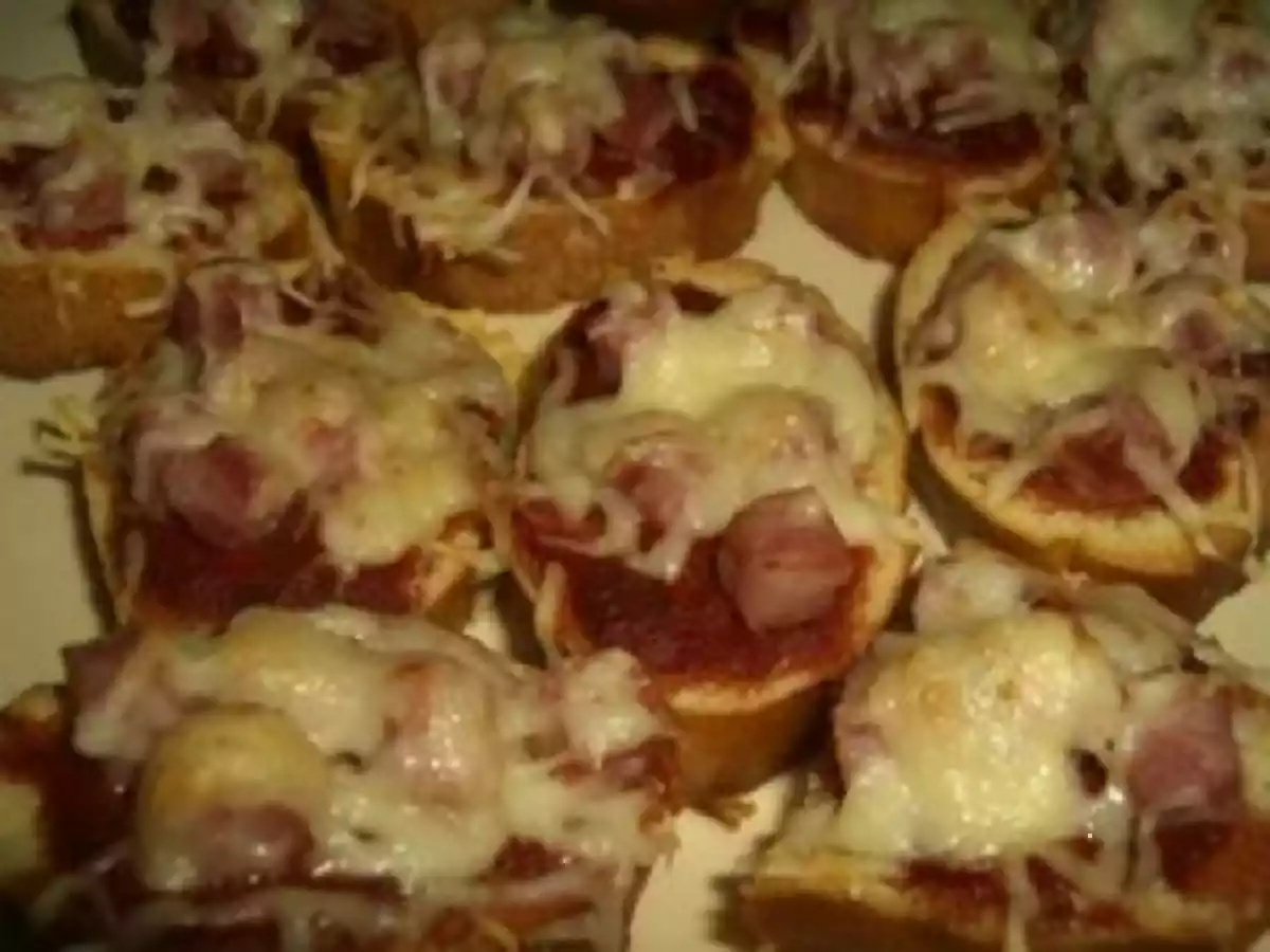 - Répartir la sauce sur les petits toasts, ainsi qu'une barquette de 75g de jambon en dès (pour 18 toasts).Disposer du gruyère rappé sur le dessus