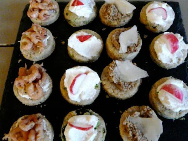 - Une fois les sablés cuits , tartiner de la tapenade d'olives vertes et des copeaux de parmesan .