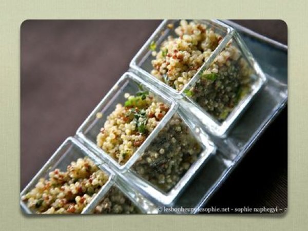 Encore des goodies pour l'apéro, sans gluten et sans lait PrécédentSuivant Apéritiffacile35 min161 Kcal Envoyer cette recette à un ami Imprimer cette page Poser une question à l'auteur Publier votre photo de cette recette Ingrédients 4 100 g de quinoa 30 g de quinoa rouge pesto au basilic 1 beau bouquet de basilic frais 2 gousses d'ail 1 à 2 cuillères à soupe de pignons de pin ou de graines de tournesol torréfiés 3 cuillères à soupe d'huile d'olive fleur de sel Coût estimé: 2.07Euros€ (0.52€/part)