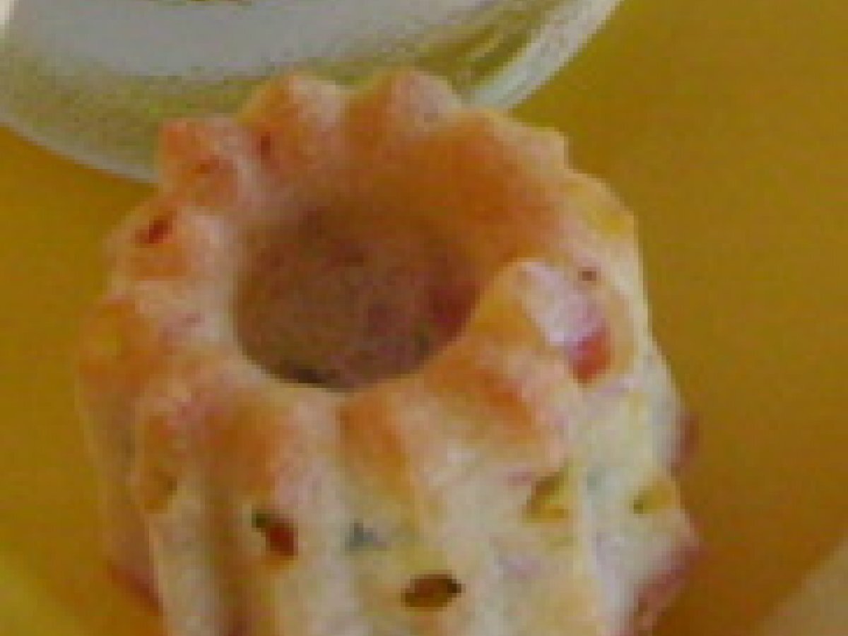 Préchauffez le four sans la grille à 200°. Mélangez la farine et la levure et ajoutez l’œuf, la crème, le lait et l'huile et fouettez jusqu'à l'obtention d'une pâte lisse. Incorporez le jambon, les herbes, le sel et le poivre. - Répartissez la préparation dans un moule à mini cannelés en silicone posé sur la grille du four et faîtes cuire 25 minutes.