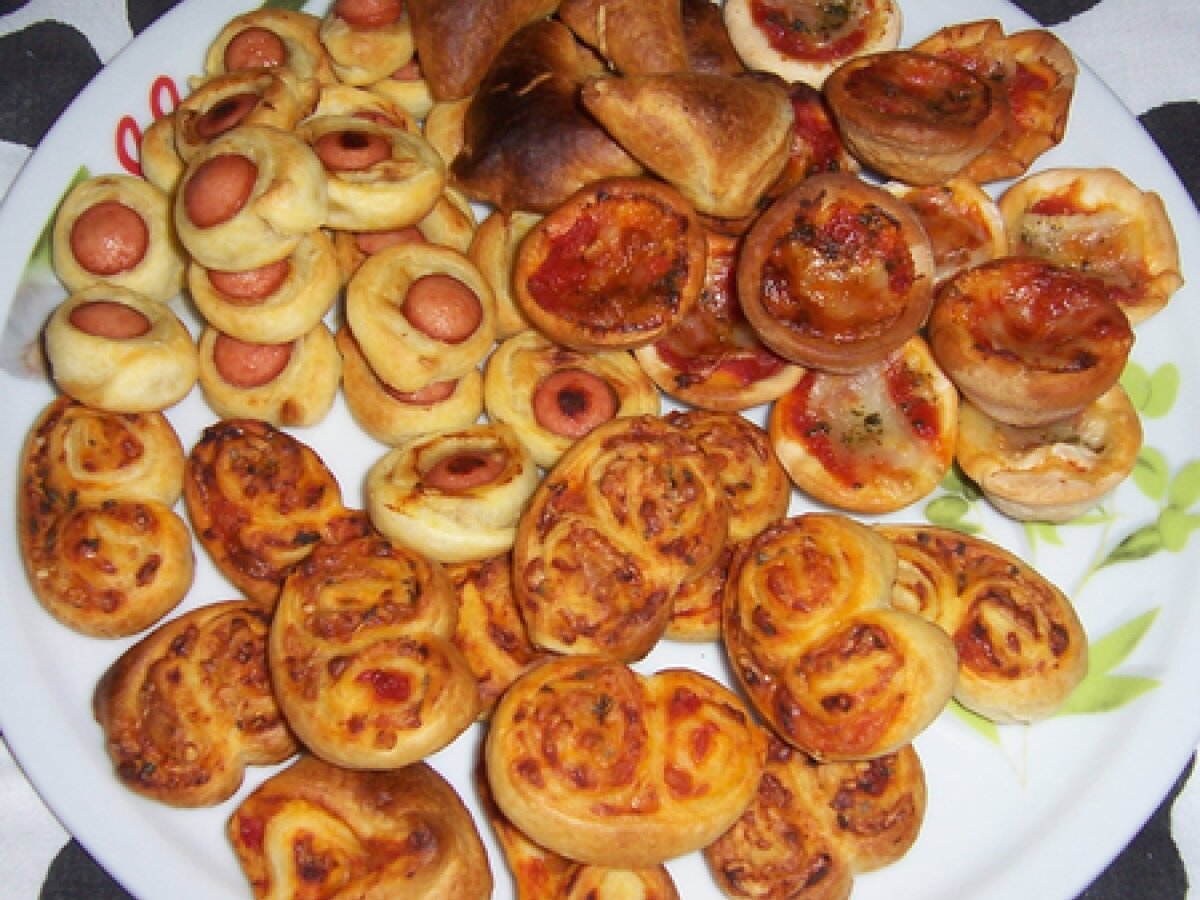 Feuilletés apéritifs Apéritiffacile1 h 15 m Envoyer cette recette à un ami Imprimer cette page Poser une question à l'auteur Publier votre photo de cette recette Ingrédients 10 Roulés aux saucisses : 1 rouleau de pâte feuilletée moutarde saucisses de Strasbourg Palmiers tomates / fromage : 1 rouleau de pâte feuilletée sauce tomate gruyère râpé Triangles au fromage : pâte feuilletée fromage au choix : gouda, bleu Mini-pizzas : pâte à pizza sauce tomate mozzarella origan