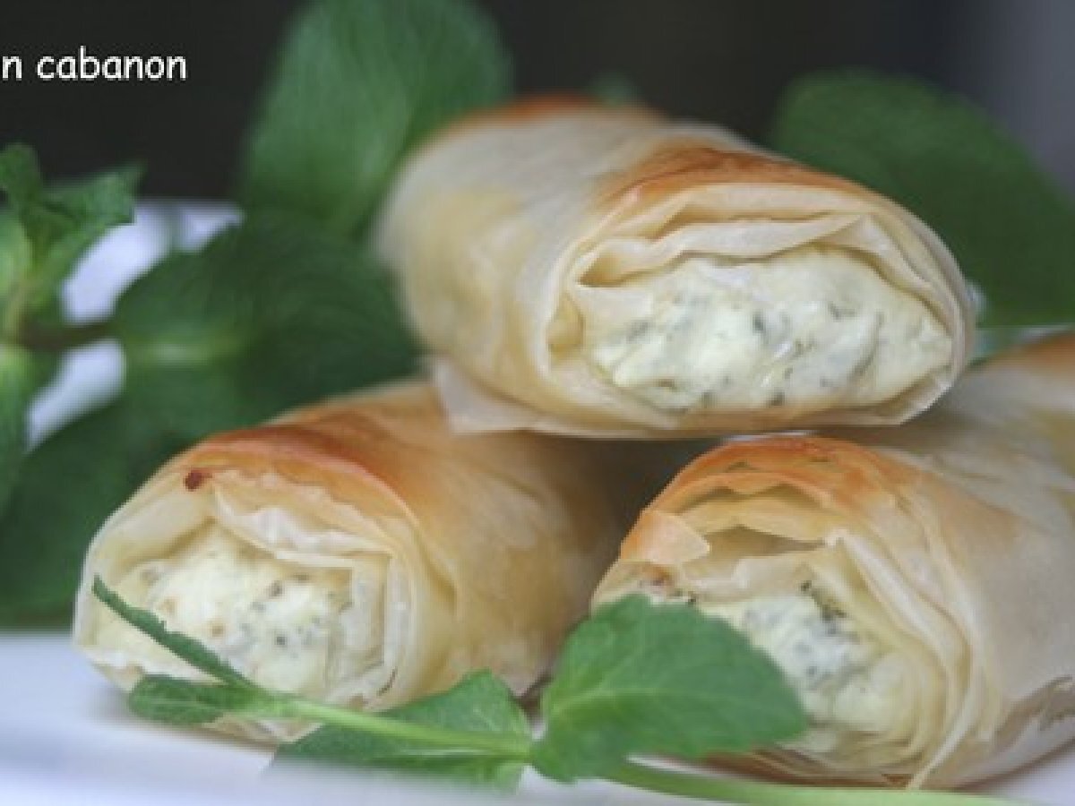 Des petits feuilletés de féta et de Saint- Moret, parfumés à la menthe. Vraiment très bons chauds ou froids.