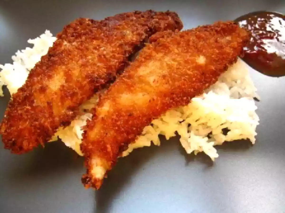 Filets de merlan frits avec la chapelure japonaise Apéritiffacile17 min Envoyer cette recette à un ami Imprimer cette page Poser une question à l'auteur Publier votre photo de cette recette Ingrédients 4 Quelques petits filets de merlan sans arêtes 1 ou 2 oeufs (assez pour y tremper tous les poissons et qu’ils en soient bien enrobés) Sauce soja au goût farine (assez pour bien enrober les filets) chapelure japonaise Ottogi 1 ou 2 litres d’huile de friture ou de végétalien Sauce sirarcha ou sauce piment douce ou autre sauce de votre choix