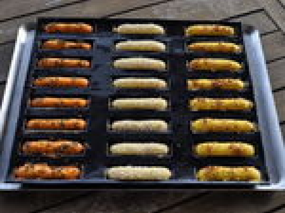 - Verser les préparations dans des poches à douilles ou seringues puis placer dans des empreintes à fingers ou mini financier.
