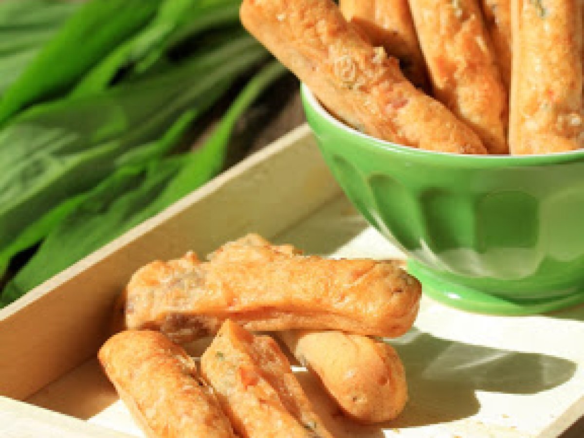 Fingers salés à l'ail des ours , tomates séchées et noisettes pour l'apéritif PrécédentSuivant Apéritiffacile25 min Envoyer cette recette à un ami Imprimer cette page Poser une question à l'auteur Publier votre photo de cette recette Ingrédients 4 180 g de farine 150 g de lait 1 cuil à soupe d'huile d'olive 1/2 sachet de levure chimique 2 oeufs 3 feuilles d'ail des ours 6 tomates séchées 20 noisettes 30 g de parmesan râpé Coût estimé: 6.35Euros€ (1.59€/part)