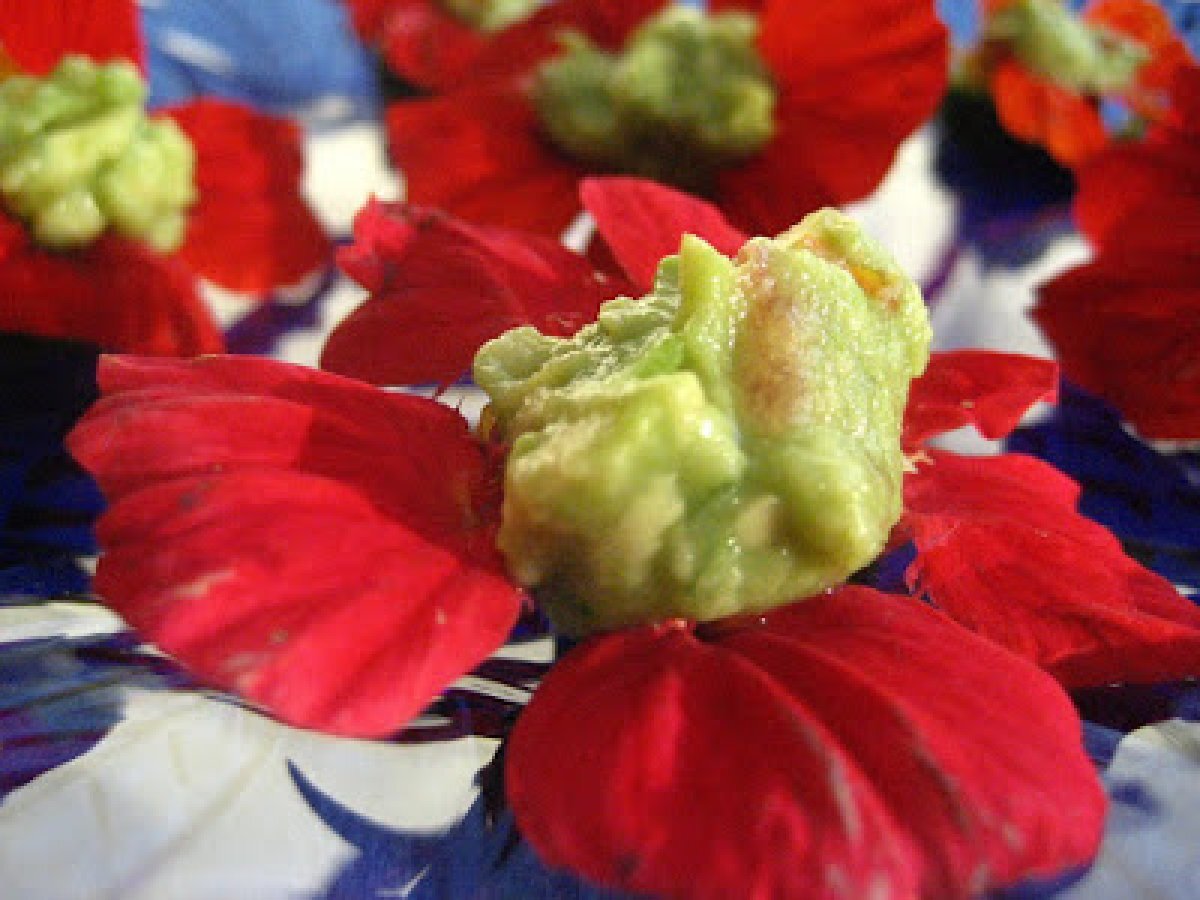 Fleurs de capucine garnies de guacamole PrécédentSuivant Apéritiffacile15 min Envoyer cette recette à un ami Imprimer cette page Poser une question à l'auteur Publier votre photo de cette recette Ingrédients 4 Guacamole 1 avocat assez gros, pelé, dénoyauté et en purée 2 cuillères à table de jus de lime 1 petite tomate mûre hachée finement 2 cuillères à table d'oignons haché finement 1 piment jalapeno ou serrano, égrainé et finement haché 1 petite gousse d'ail, hachée fin Sel au goût Environ 20 fleurs de capucine 1 petit jicama, pelé et tranché à 1/4 de pouce d'épaisseur Jus de lime