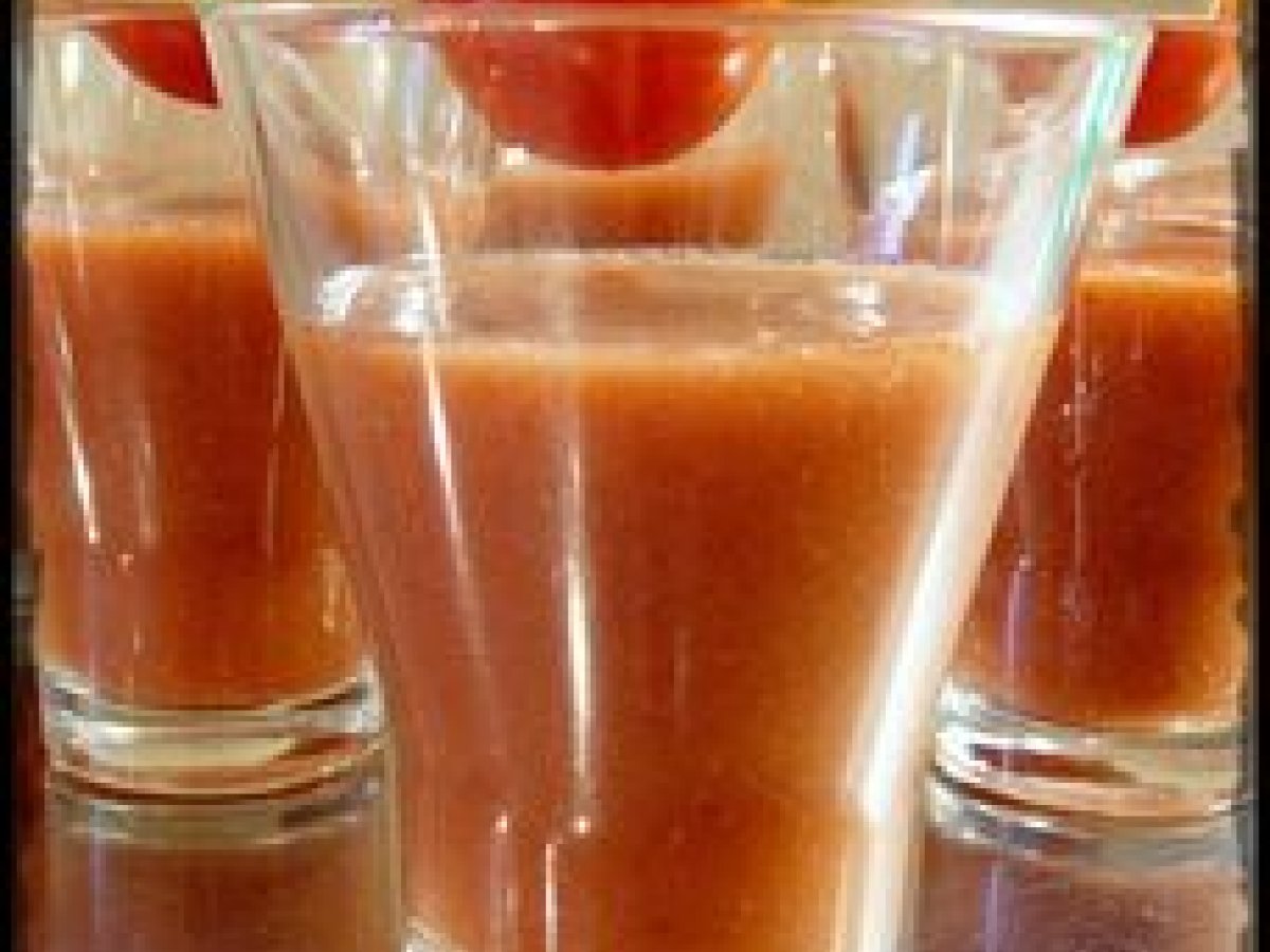 Gaspacho tomates et fraises Apéritiffacile15 min29 Kcal Envoyer cette recette à un ami Imprimer cette page Poser une question à l'auteur Publier votre photo de cette recette Ingrédients 6 200 grammes de tomates 100 grammes de fraises quelques gouttes de jus de citron 1 cuillère à café de vinaigre balsamique 1 cuillère à café d'huile d'olive 6 feuilles de menthe sel et poivre 1 pincée de piments d'Espelette 6 tomates cerise Coût estimé: 2.56Euros€ (0.43€/part)