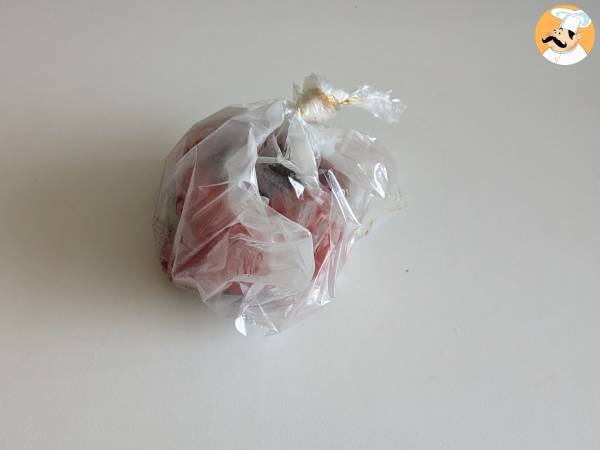 Retirer le poivron du four et le placer dans le sac de congélation encore chaud pendant une dizaine de minutes pour enlever la peau plus facilement.