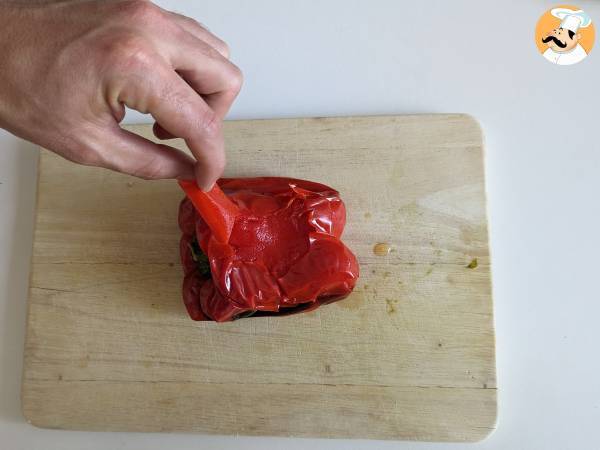 Retirer le poivron et enlever la peau et les graines.