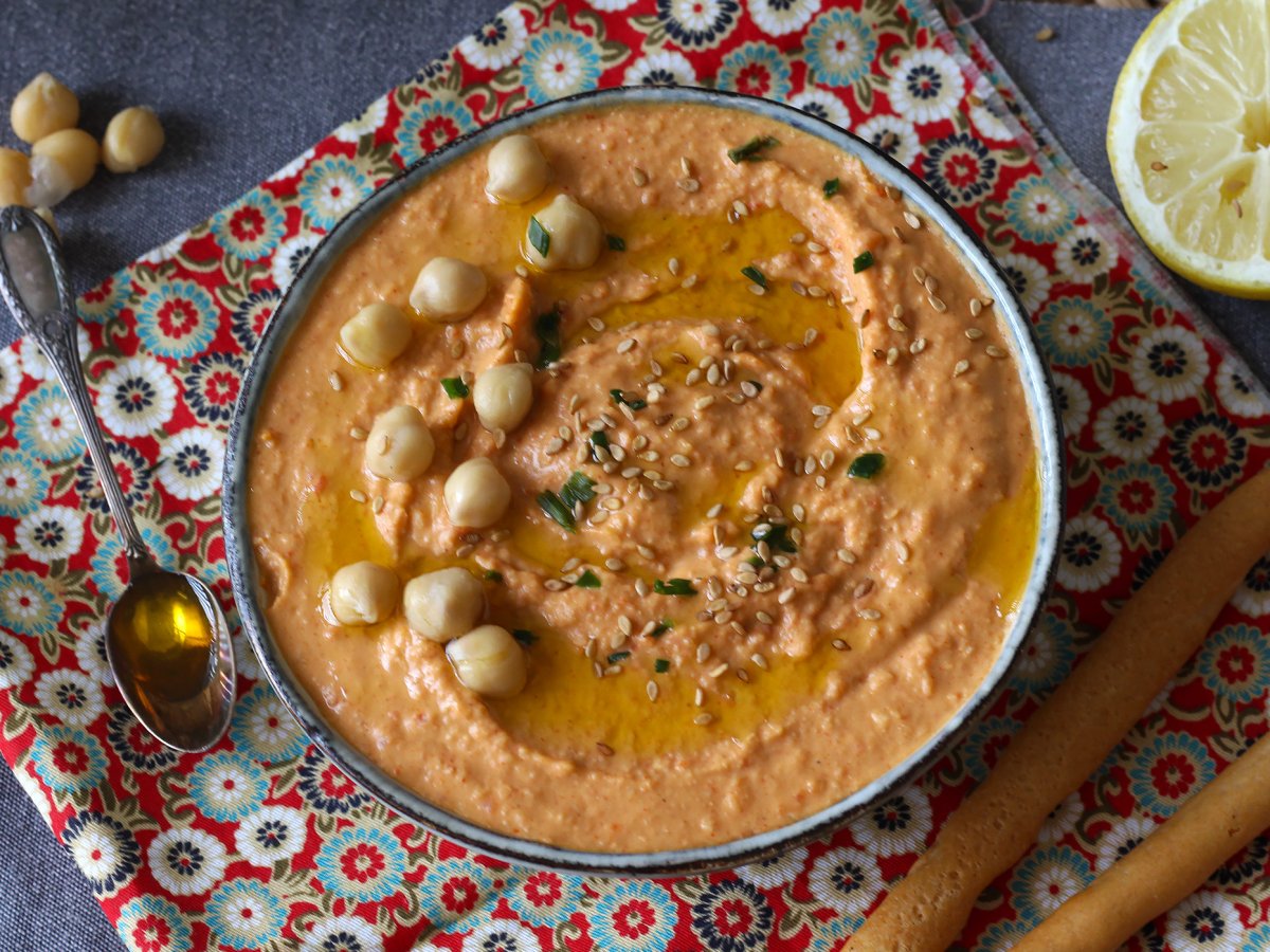 Houmous aux poivrons rouges, la tartinade parfaite pour l'apéro!