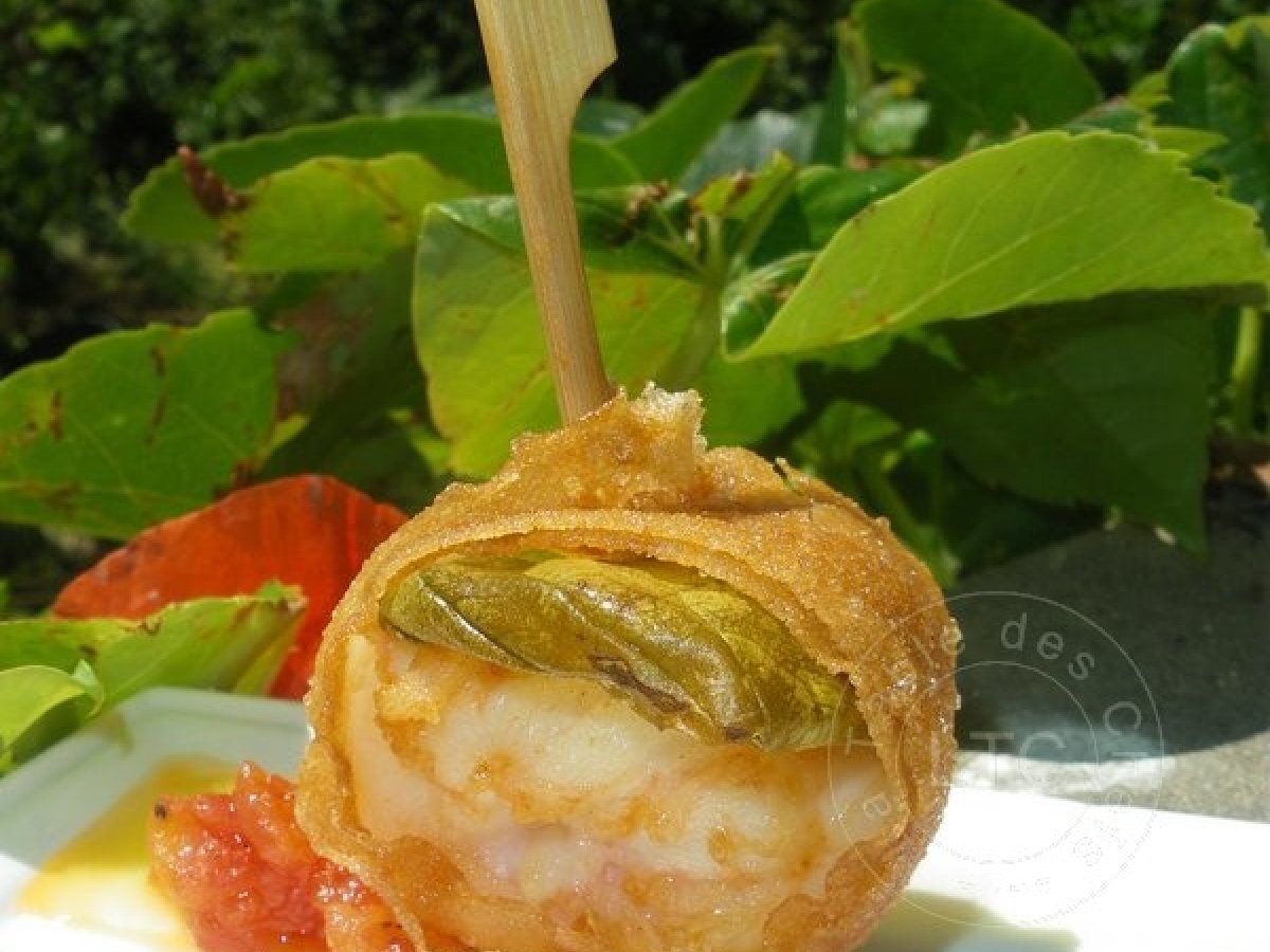 Langoustine croustillante au basilic et fondue de tomate votez maintenant Apéritiffacile15 min Envoyer cette recette à un ami Imprimer cette page Poser une question à l'auteur Publier votre photo de cette recette Ingrédients 4 4 belles langoustines 4 feuilles de basilic feuilles de brick 1 tomate huile d’olive sel poivre Fondue de tomate