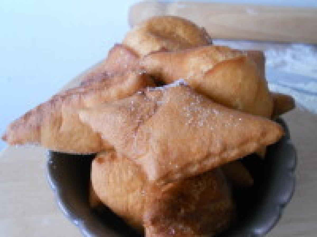 - Étalez votre pâte à beignets à l'aide d'un rouleau pâtissier . L'épaisseur doit être d'environ 5 à 8 mm. A l'aide d'une roulette à pâtisserie ou d'un couteau , vous faites des formes de losanges jusqu'à épuisement de la pâte.