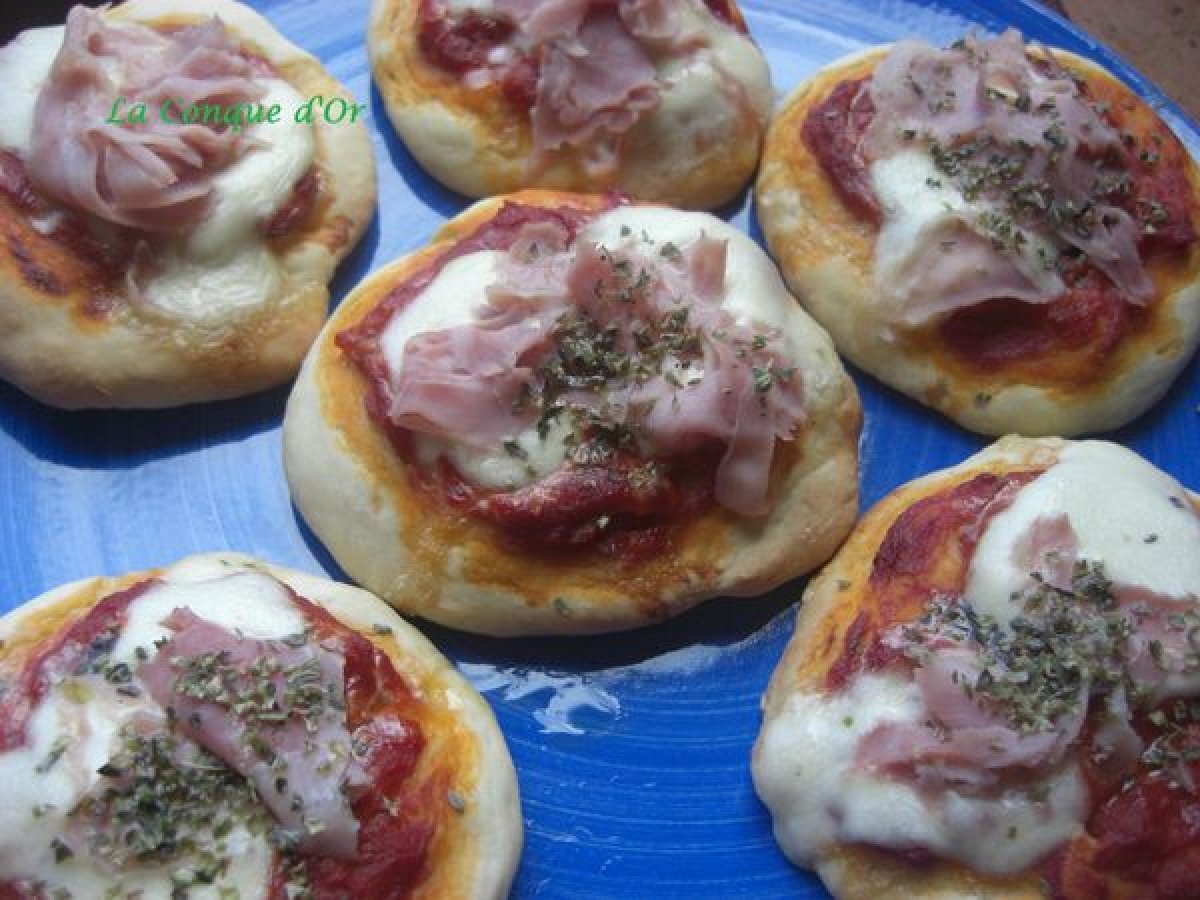 Les pizzettes : petites pizzas au jambon et mozzarella
