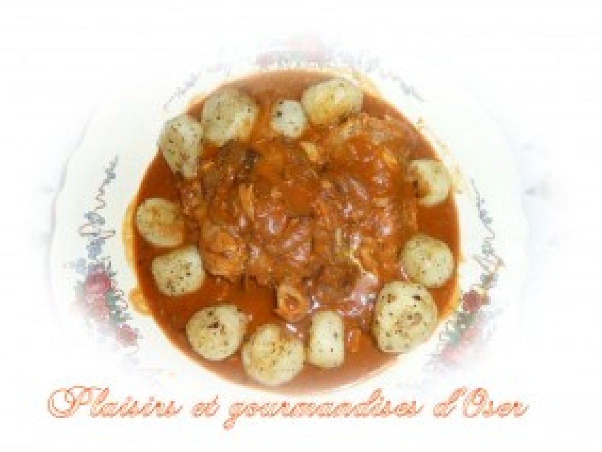 - Déglacer avec le vin blanc. Ajouter les tomates et l’ail et laisser mijoter 40 minutes.