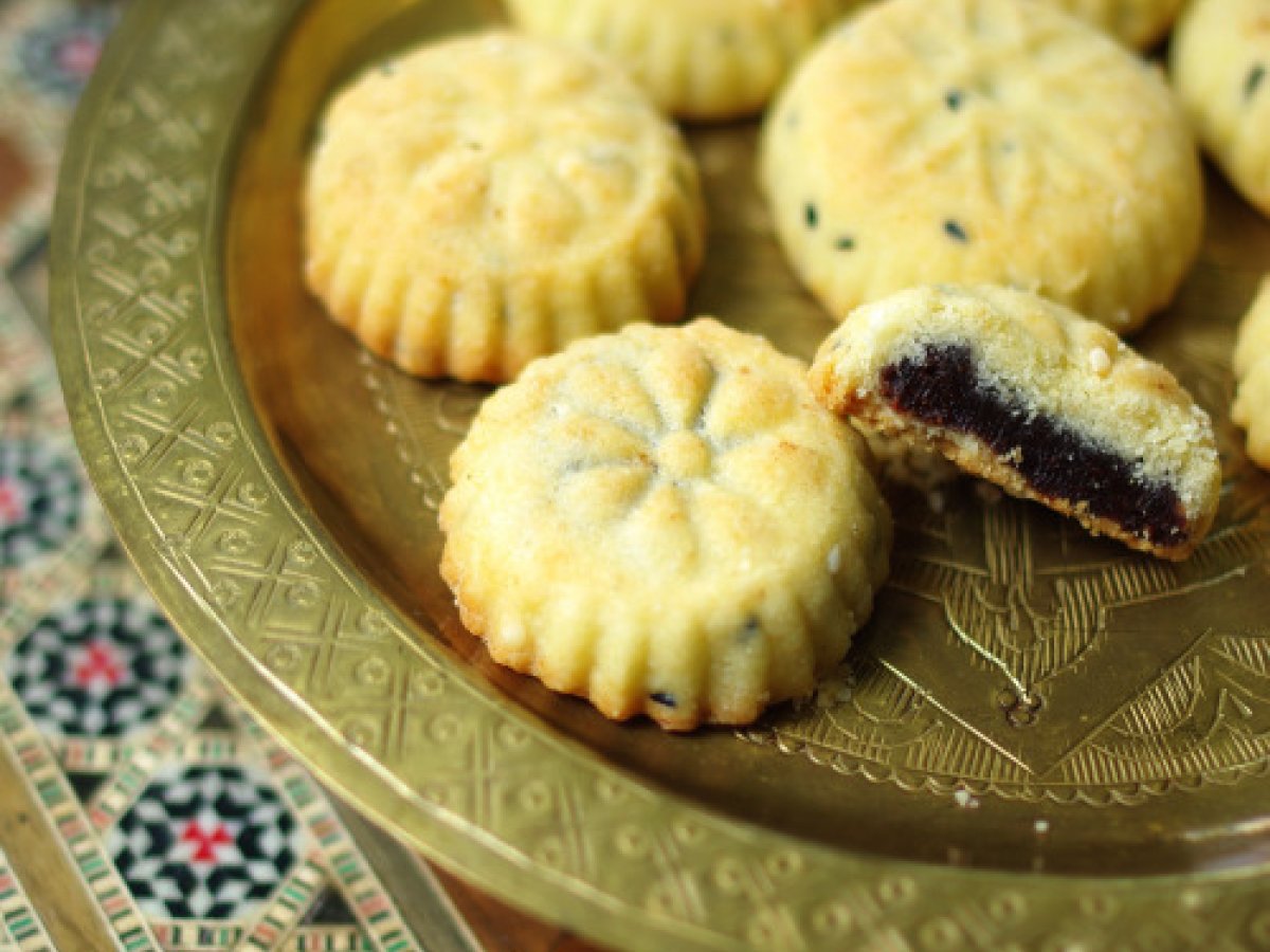 Maamoul aux dattes PrécédentSuivant Apéritifmoyen25 min Envoyer cette recette à un ami Imprimer cette page Poser une question à l'auteur Publier votre photo de cette recette Ingrédients 6 375 g de semoule fine 125 g de farine 225 g de beurre environ 10 g de levure boulangère fraîche du lait pour ramasser la pâte 1/2 cuillère à soupe de Mahlab en grains 1/2 cuillère à soupe de graines de nigelle 1 cuillère à soupe de sésame 450 g de pâte de dattes beurre
