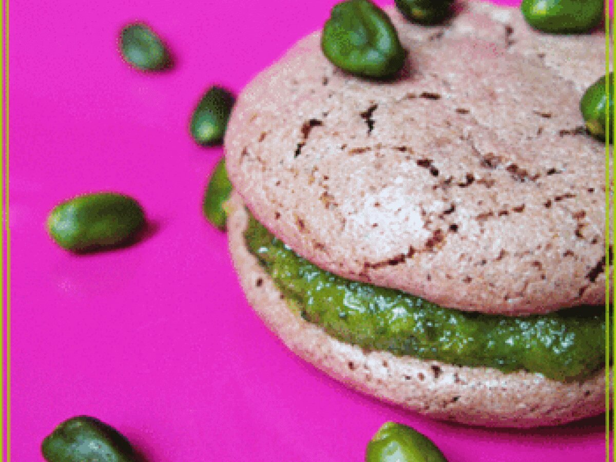 Ces macarons sont constitués d'une coque au chocolat et garnis d'une ganache à la pistache