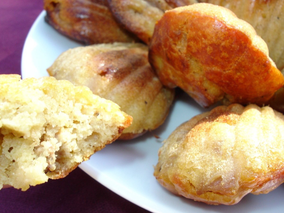 Madeleines au foie gras et pomme votez maintenant PrécédentSuivant Apéritiffacile20 min215 Kcal Envoyer cette recette à un ami Imprimer cette page Poser une question à l'auteur Publier votre photo de cette recette Ingrédients 8 2 oeufs 80g de farine 1/2 sachet de levure chimique 3 cuillères à soupe d'huile de tournesol 15g de gruyère râpé 120g de foie gras frais cru 1 pomme granny smith 1 cuillère à café de vinaigre balsamique 1 cuillère à soupe de caramel liquide 10 g de beurre sel et poivre Coût estimé: 8.06Euros€ (1.01€/part)