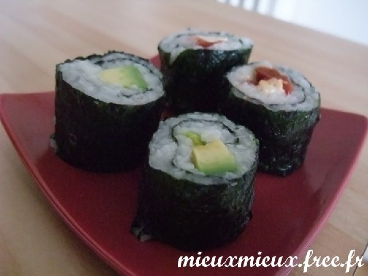 Makis à l'avocat et à la tomate séchée et au chèvre Apéritiffacile40 min Envoyer cette recette à un ami Imprimer cette page Poser une question à l'auteur Publier votre photo de cette recette Ingrédients 3 300 g de riz gluant 8 cuillères à soupe de vinaigre de riz 8 cuillères à café de sucre en poudre 1 avocat une dizaine de tomates séchées 6 tranches de bûche de chèvre 12 tranches d’algue séchée