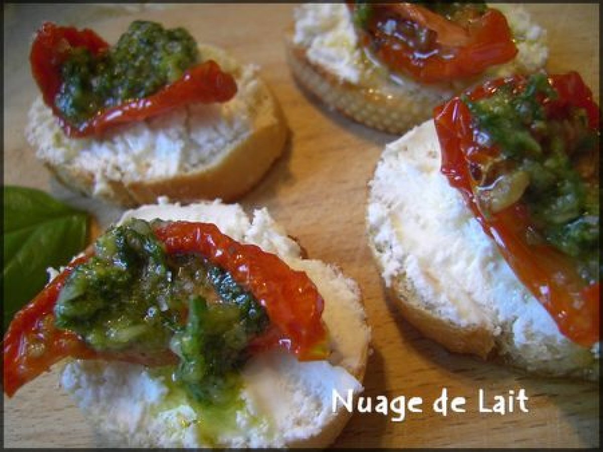 Mini-bruschetta à l'italienne au pesto alla genovese et sa version light
