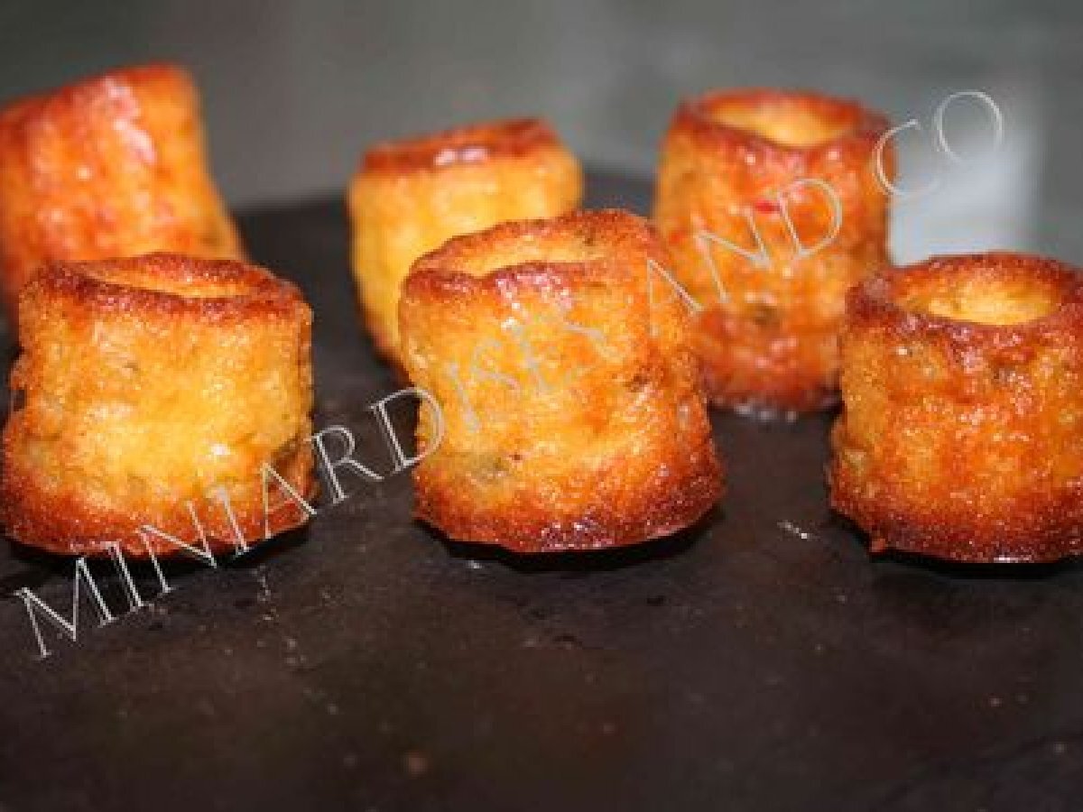 Mini caneles aux poivrons PrécédentSuivant Apéritifmoyen1 heure Envoyer cette recette à un ami Imprimer cette page Poser une question à l'auteur Publier votre photo de cette recette Ingrédients 4 · 150 g de farine · 1/2 cuillère à café de levure chimique · 3 oeufs · 50 cl de lait · 50 g de beurre · 20 cl d'huile d'olive · 100 g de Parmesan · 50 g de gruyère râpé · Sel, poivre · poivronnade