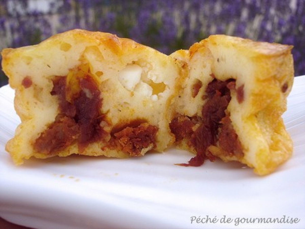 Mini-clafoutis au chorizo, tomates séchées et feta
