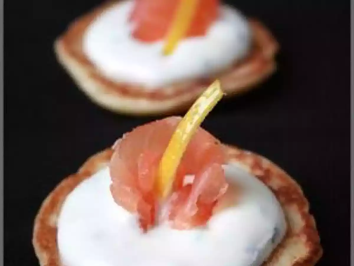 Mini crêpes au saumon fumé PrécédentSuivant Apéritiffacile25 min420 Kcal Envoyer cette recette à un ami Imprimer cette page Poser une question à l'auteur Publier votre photo de cette recette Ingrédients 4 Pâte à crêpes: 125 g de farine avec levure incorporée 2 oeufs battus 12,5 cl de lait 1 cuillère à soupe de crème fraîche Huile ou beurre fondu pour la cuisson Crème: 12,5 cl de crème fraîche liquide (35% de MG) 2 cuillères à soupe de mayonnaise 2 cuillères à soupe de jus de citron 2 cuillères à soupe de ciboulette hachée finement 1 cuillère à soupe de menthe fraîche finement hachée 120 g de saumon fumé, coupé en morceau Lanières de zeste de citron Coût estimé: 9.38Euros€ (2.35€/part)