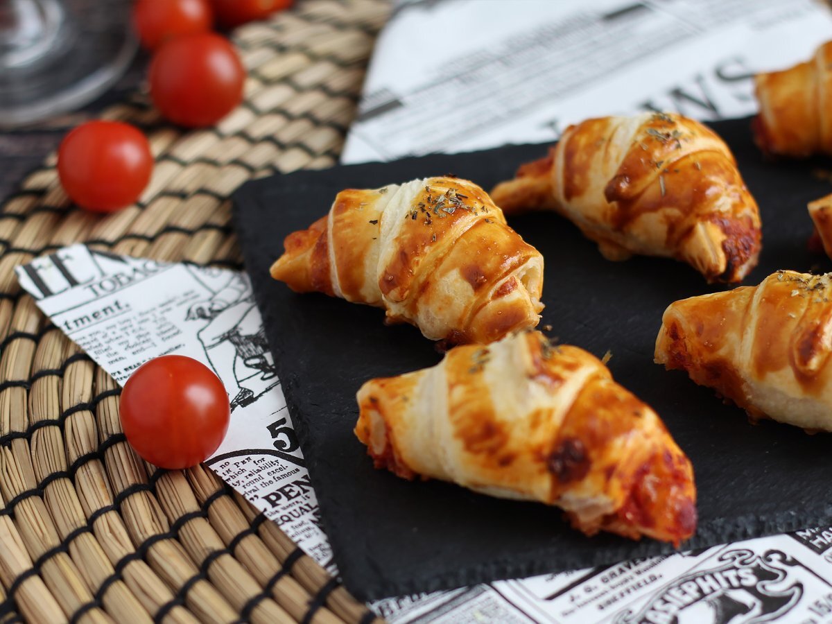Mini croissants apéritif (pizza au jambon et fromage)