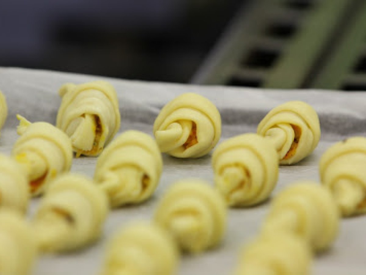 Mini-croissants potimarron, noisettes & fourme d'ambert votez maintenant PrécédentSuivant Apéritiffacile40 min371 Kcal Envoyer cette recette à un ami Imprimer cette page Poser une question à l'auteur Publier votre photo de cette recette Ingrédients 4 Pour 16 mini-croissants : 130 g de potimarron 1/4 de gousse d'ail 25 g de fourme d'ambert 25 g de noisettes entières non émondées 1 pâte feuilletée Poivre Sel 1 jaune d'oeuf