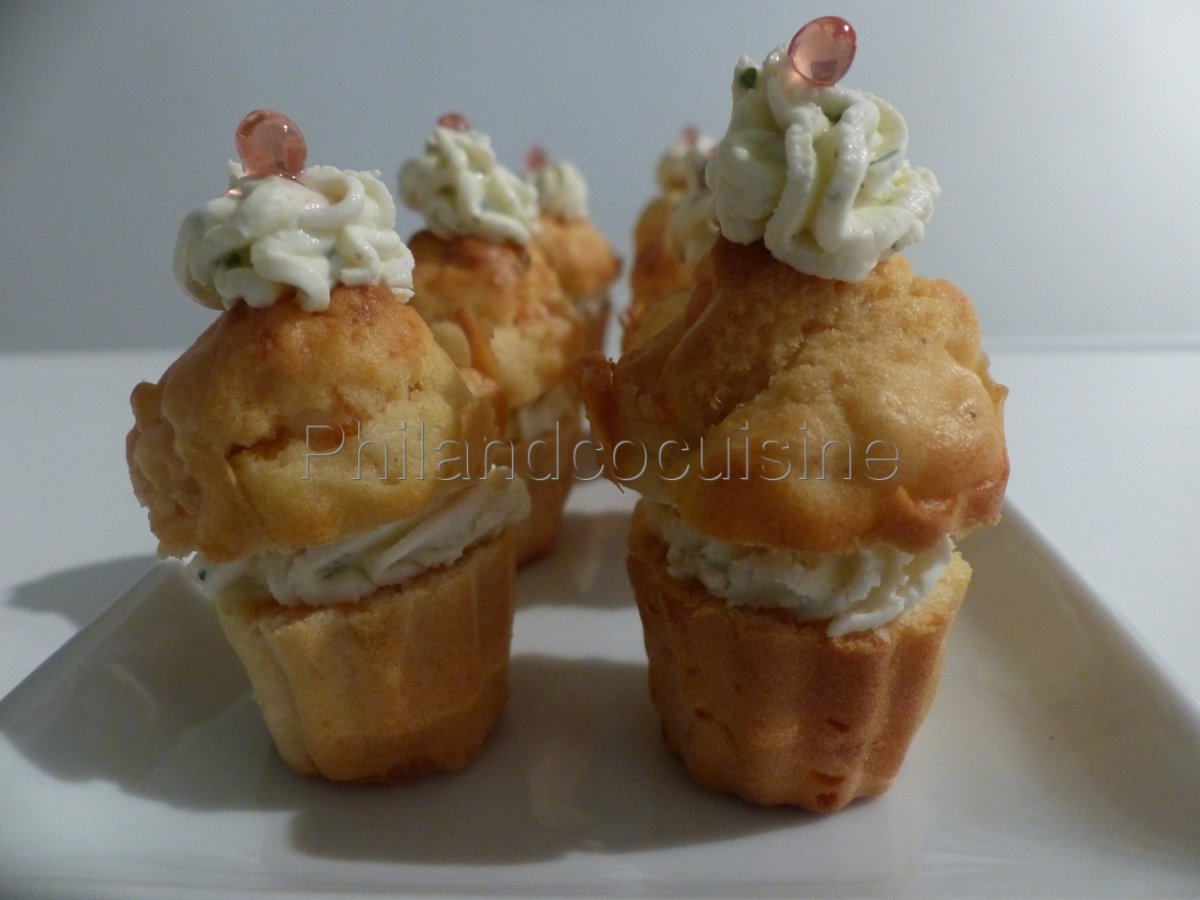 Mini cupcakes au saumon fumé, topping au fromage frais