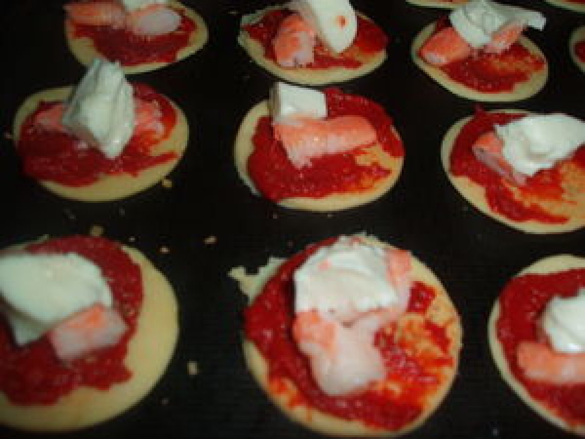 Mini-feuilletés tomates, crevettes, mozzarella PrécédentSuivant Apéritiffacile25 min Envoyer cette recette à un ami Imprimer cette page Poser une question à l'auteur Publier votre photo de cette recette Ingrédients 6 1 rouleau de pâte feuilletée 20 crevettes décortiquées 1 boule de mozzarella coupée en morceaux Du concentré de tomates Un peu d'origan