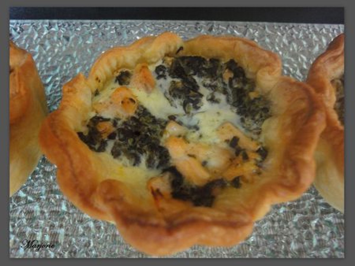 Mini quiche saumon-oseille votez maintenant Apéritiffacile52 min Envoyer cette recette à un ami Imprimer cette page Poser une question à l'auteur Publier votre photo de cette recette Ingrédients 6 1 pavé de saumon 70 g d'oseille ½ mug de lait ½ mug de crème liquide à 30% 1 oeuf + 1 jaune sel poivre 1 pâte feuilletée