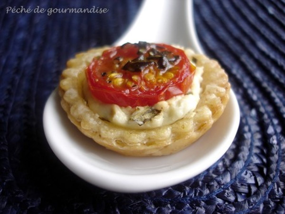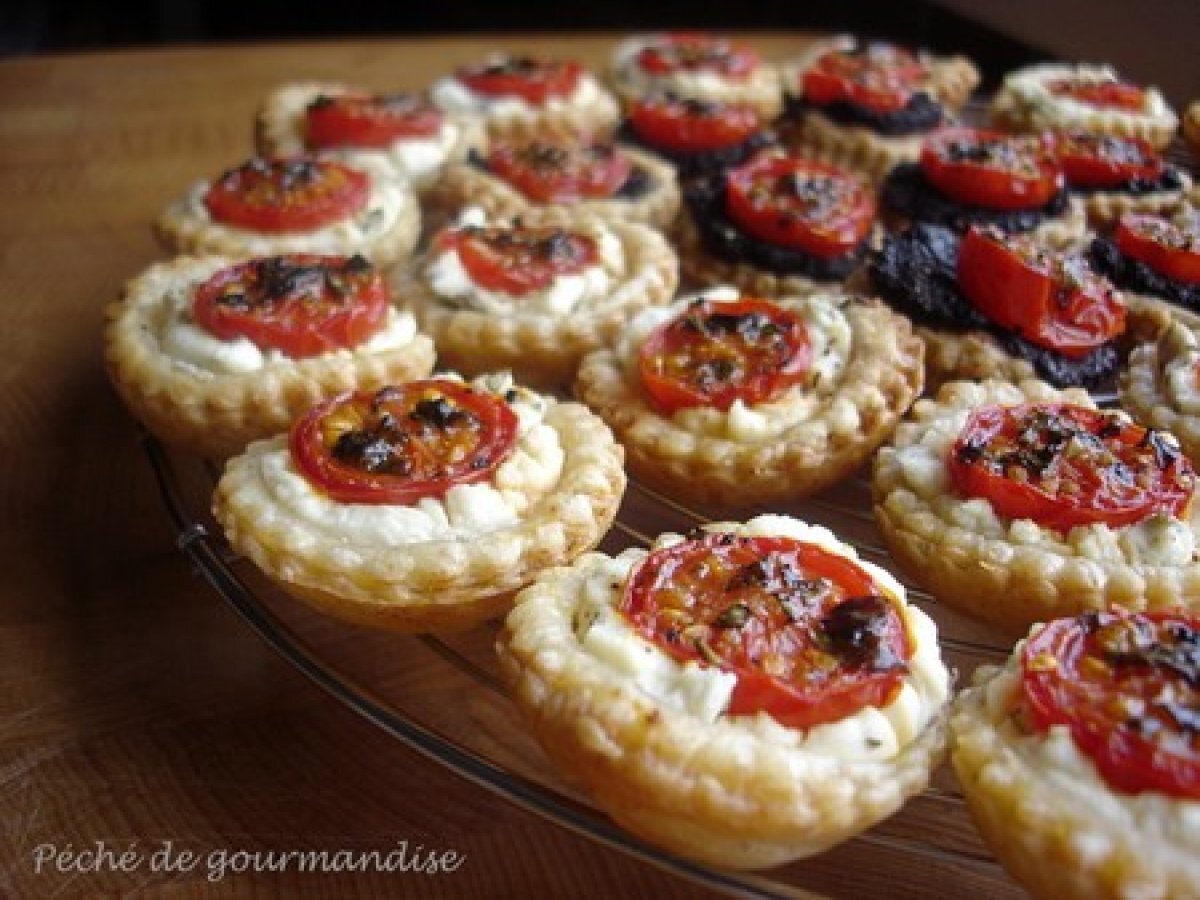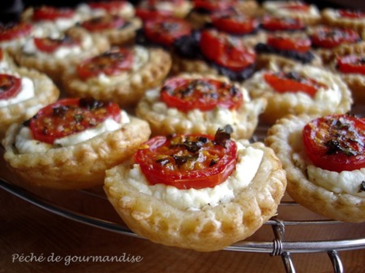 Mini-tartelettes au chèvre frais et tomates cerises PrécédentSuivant Apéritiffacile35 min325 Kcal Envoyer cette recette à un ami Imprimer cette page Poser une question à l'auteur Publier votre photo de cette recette Rien de compliqué dans cette recette appréciable. Ingrédients 5 250 g de pâte feuilletée Du fromage de chèvre frais style Petit Billy ou Chavrou Des tomates cerises Un peu de basilic Huile d'olive Sel et poivre Épices (facultatif) Coût estimé: 2.77Euros€ (0.55€/part)