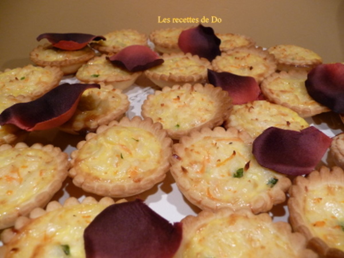 Mini tartelettes au crabe Apéritiffacile35 min515 Kcal Envoyer cette recette à un ami Imprimer cette page Poser une question à l'auteur Publier votre photo de cette recette Ingrédients 4 1 rouleau de pâte brisée 180 g de chair de crabe 20 cl de crème liquide 2 oeufs entiers 2 cuillères à soupe de fromage râpé un soupçon de piment d'espelette 1 cuillère à café de curcuma fleur de sel et poivre