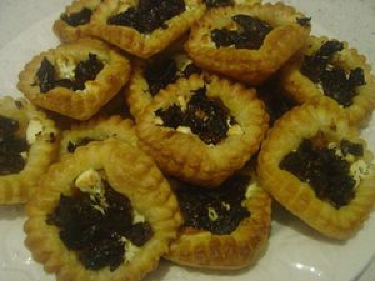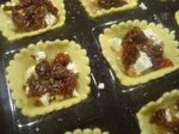 Mini-tartelettes oignon, tomates séchées & fétâ