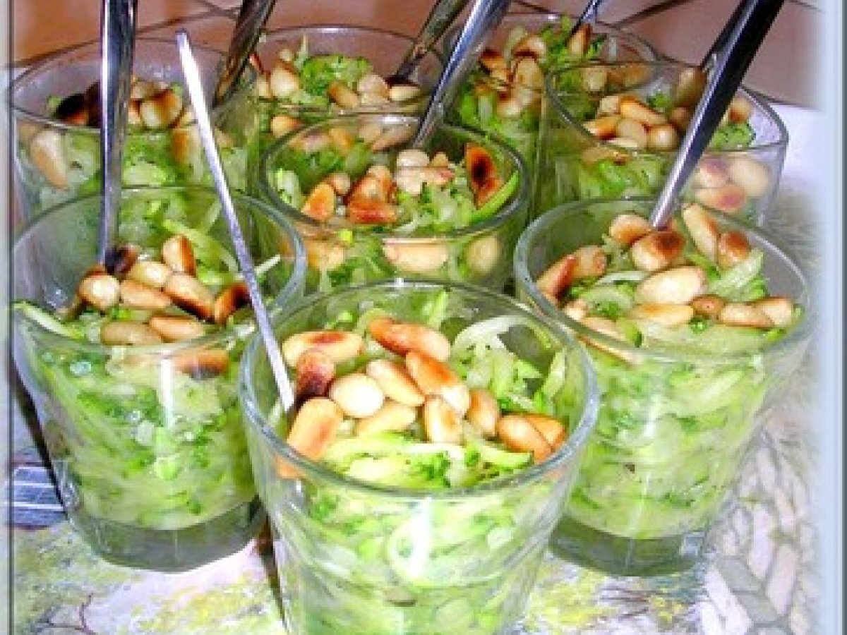 Mini verrines courgettes et pignons de pin
