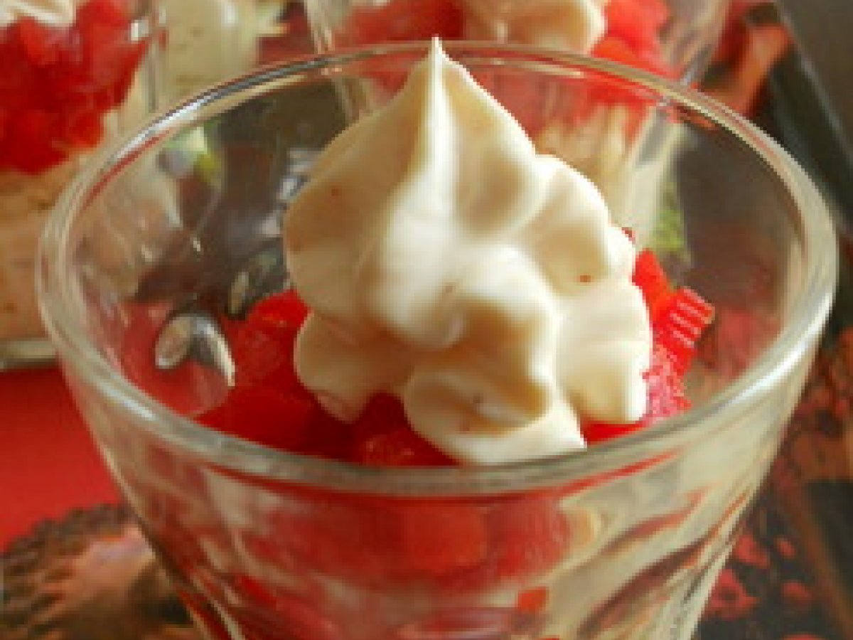 Mini verrines de pois chiches-mascapone Apéritiffacile1 h 15 m55 Kcal Envoyer cette recette à un ami Imprimer cette page Poser une question à l'auteur Publier votre photo de cette recette Ingrédients 8 120 g de pois chiches trempés la veille dans l'eau froide 4 cuillères à café d'huile d'olive 4 cuillères à café de mascarpone 1 cuillère à café d'oignon très finement émincé 1 cuillère à soupe de jus de citron 2 cuillères à café de cumin en poudre 1/2 poivron rouge épluché et en petit dés 2 cuillères à soupe de mascarpone 1 cuillère à soupe de crème liquide sel 5 baies piment d'Espelette Coût estimé: 2.22Euros€ (0.28€/part)