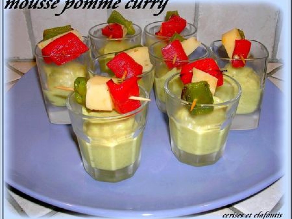 Mini-verrines: mousse de pomme au curry et sa mini brochette